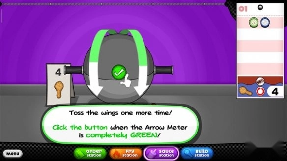 12、抛掷鸡翅,箭头仪表全绿时点击按钮。