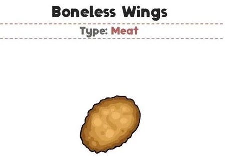 Wings(鸡腿):初始自带食材,与现实生活中的鸡腿相似,游戏中呈金黄色,可能已提前蘸过面包糠。