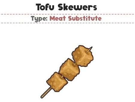 Tofu Skewers(豆腐串):与拉德林解锁于等级20,3~4块豆腐串在一起炸制。