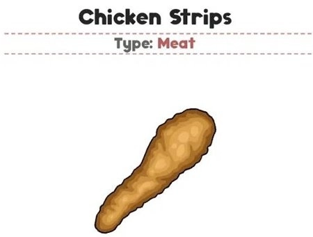 Chicken Strips(鸡肉条):与伊皮解锁于等级15,鸡胸肉切条后裹上三件套炸制而成。