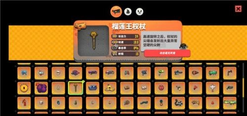 第五名:榴莲王权杖(连射远程类,解锁后打第三关榴莲有几率掉落)