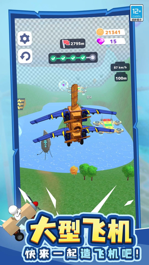 《我能走得贼远》是一款充满创意的休闲合成闯关游戏。玩家需要从组装飞机起步,通过合成各类组件来搭建专属于自己的飞机;在调整好飞机的平衡状态后,便可驾驶它在不同场景中开启飞行闯关之旅,一路向前翱翔。游戏中,玩家既能体验亲手打造飞机、驾驶飞机的乐趣,也需要运用自身的操作技术与创造能力来完成挑战。