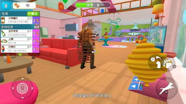 游戏以独特的狗狗视角展开,所有家具与物品都显得格外庞大,为玩家带来真实的宠物体验。