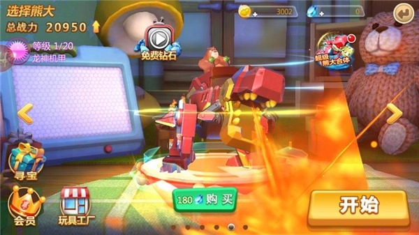 若想快速闯过所有关卡,一套强力的阵容搭配肯定是关键。这里要推荐的组合是龙神熊大和飞船熊二。龙神熊大是游戏里顶尖的陆地机甲,它不仅有着惊人的单体伤害与攻击实力,还能依据战局的变动灵活切换作战形态,不管是机甲状态还是机械龙神状态,都具备极为出色的进攻能力。飞船熊二在单体攻击上虽然比电玩熊二略差一些,但它的必杀技释放速度非常快,而且攻击范围更大,作为辅助攻击类角色是相当合适的。