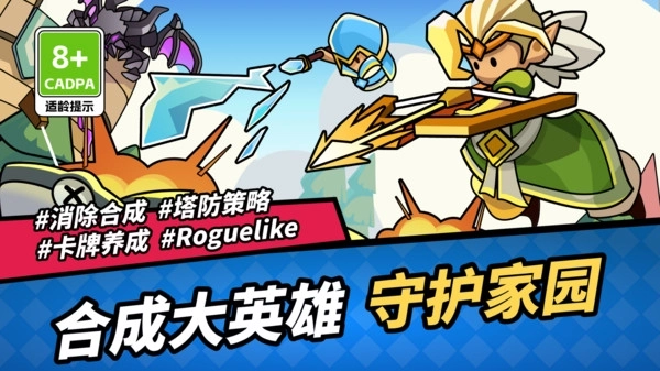 2、操作与控制方式直观易懂,合成玩法趣味十足,英雄角色个性鲜明,期待你的体验!
