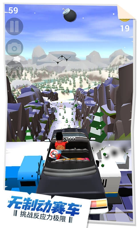 无制动式跑酷玩法中,玩家要在车辆失控的状态下,通过左右移动来避开障碍物,挑战性十足。2、游戏提供多种不同类型的车辆让玩家自由收集,每款车辆都拥有独特的外观和性能。玩家还能通过收集与购买绚丽多彩的皮肤,自定义赛车的样式。3、游戏设置了多种不同模式,像无尽模式、幽灵挑战模式、限时挑战模式等,以满足玩家的不同需求。