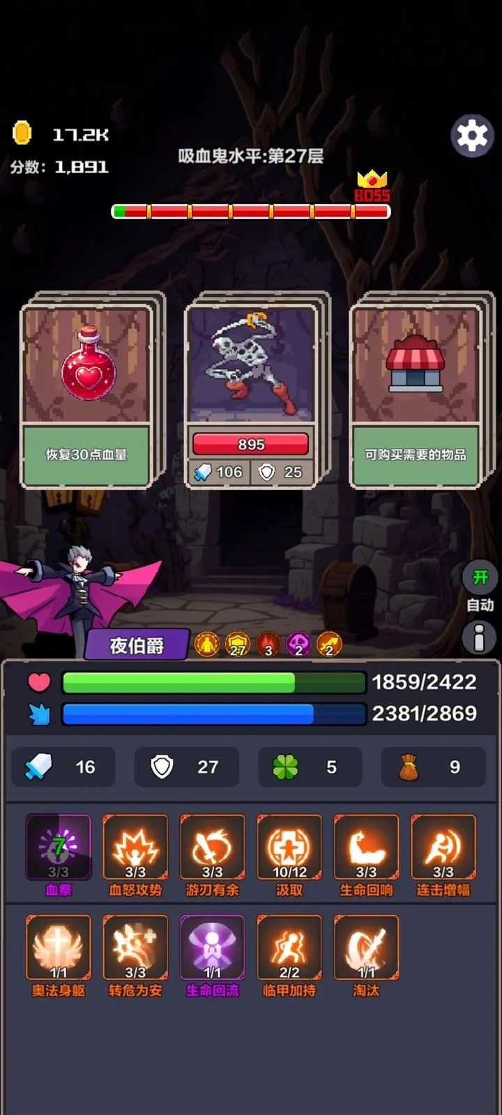 要是没带“汲取”,关卡又短时间内碰不上,那想过十关可不容易。“炼金”是用来打钱的,能帮你快速实现金币自由。“吸血攻击”既能补充伤害,又能回血。
