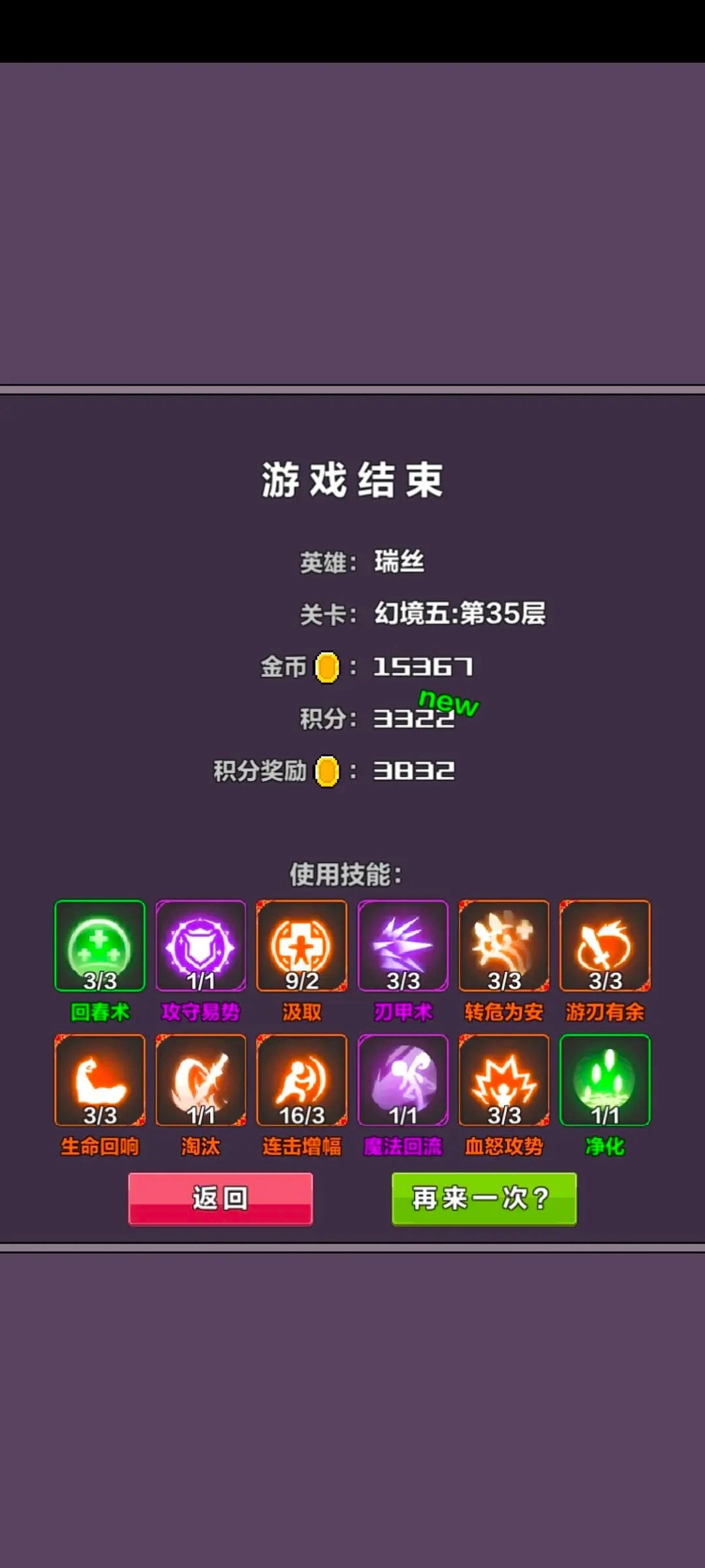 进入关卡后记得先普通攻击几次,最后一下切换成技能释放,这样能快速积累金币。等打到第三四层时就不会太缺金币了,记得尽早把回血回蓝的技能点出来。