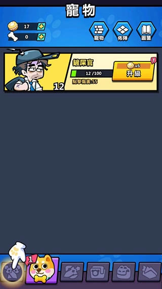 点击下方的狗头图标就能进入人物升级界面,你可以用击败敌人得到的狗爪币来完成升级操作。