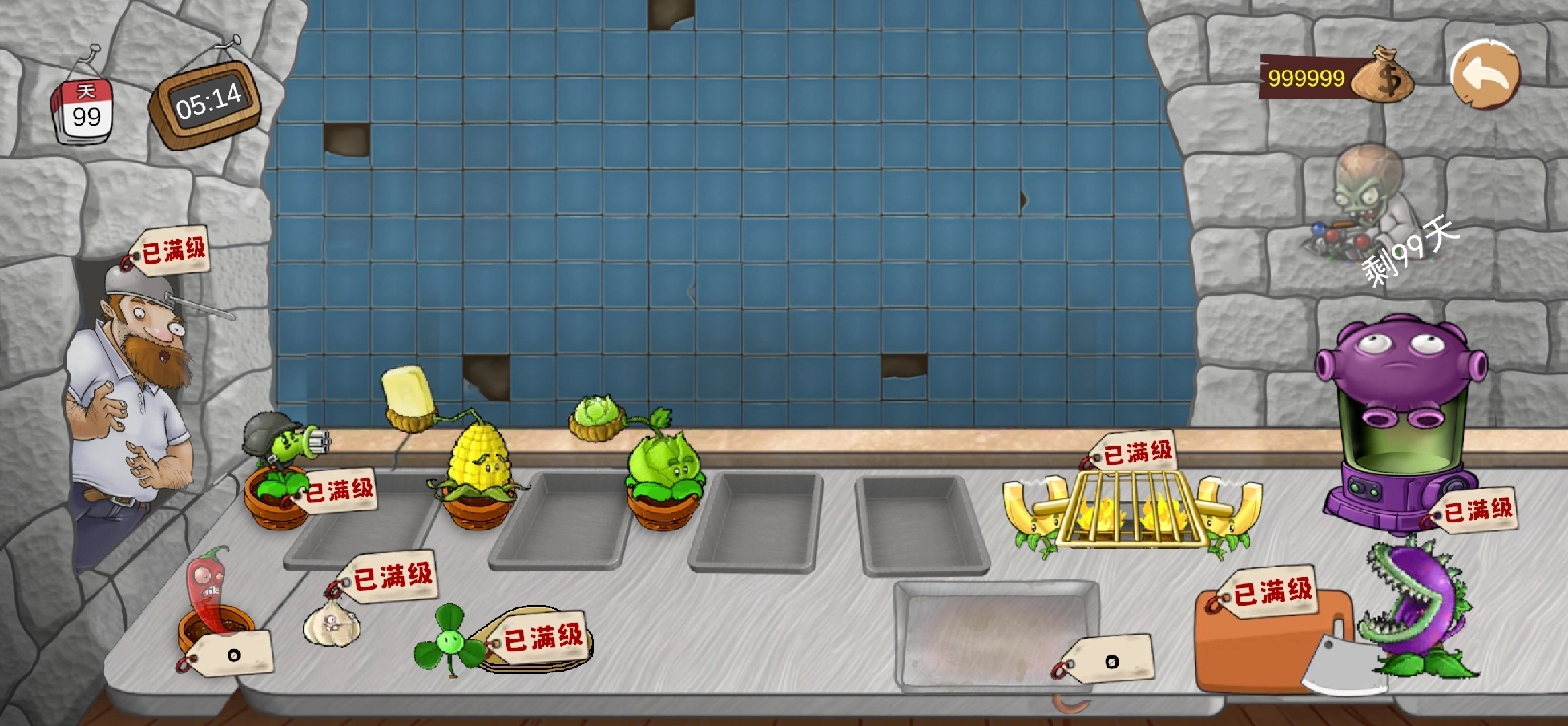 1、游戏里的厨师换成了戴夫,只要点击戴夫就会弹出补货窗口,窗口里的美食全是各式各样的植物。