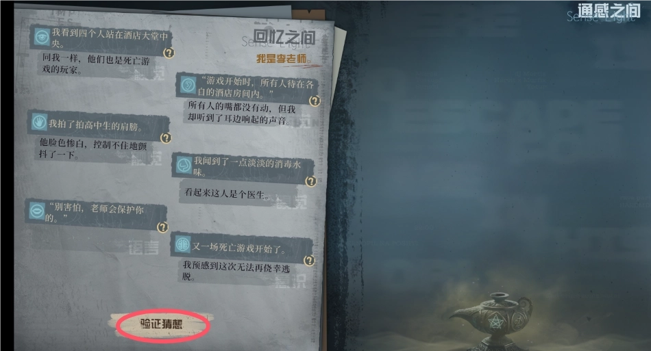 当你推开这栋别墅的大门,心里清楚不会有任何人出来迎接。实际上,别墅里的六个人都已丧命。谁是真凶?他们因何而死?临终前又经历了什么?作为声名远扬的灵媒师,你受警方委托来到案发现场展开调查。你得运用自己独特的超能力——与死者产生通感的能力。点亮魂灯,收集视觉、听觉、触觉、嗅觉、味觉的记忆碎片,一点点拼凑还原当时的场景,逐步揭开这起惨案背后隐藏的真相。