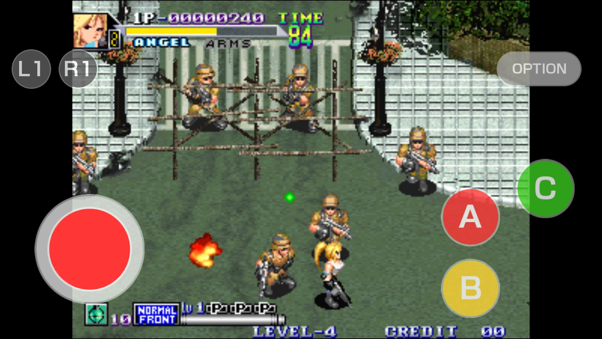 核心玩法是经典的横版卷轴射击类型,玩家需灵活操控角色避开密集弹幕,同时精准地消灭各类敌人。