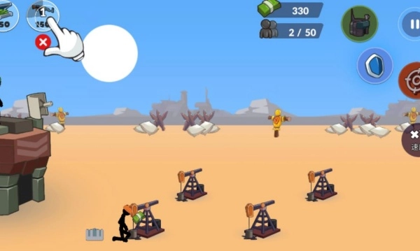 采用实时兵线推塔对抗玩法,指挥多支火柴人军团分路进攻,核心目标是摧毁敌方防御塔,最后集结全部力量攻破主城堡以获取胜利。