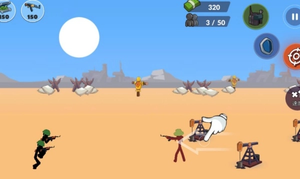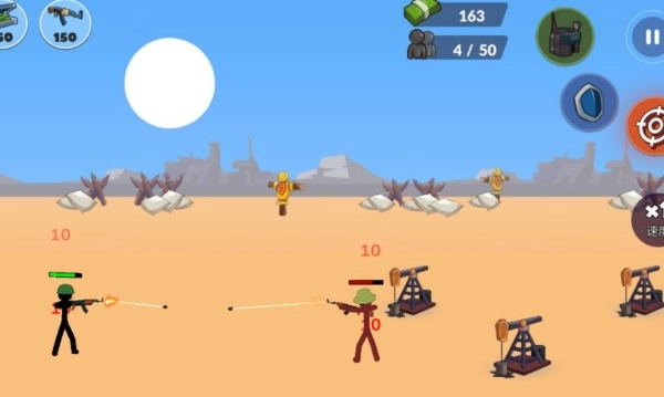 千人同屏优化技术打造大规模军团混战场景,以极简火柴人美术风格结合震撼冲锋画面,既保证强烈的视觉冲击,又能让玩家沉浸于战术博弈之中。