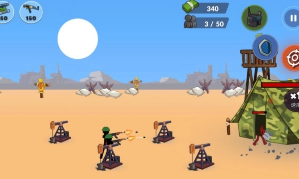 《火柴人王国大战》是一款策略战争题材的塔防竞技游戏,玩家将参与史诗级的城池攻防对决。游戏中,你可以招募步兵、弓手、法师等多样化兵种,结合动态地形与兵种克制机制来排兵布阵;还能研发各类攻城器械,解锁强力的合体技能;同时,昼夜交替与天气变化的系统也需要灵活应对,以此调整战术策略。此外,占领矿点积累资源、升级科技树,最终在激烈的混战中实现以弱胜强的逆袭。