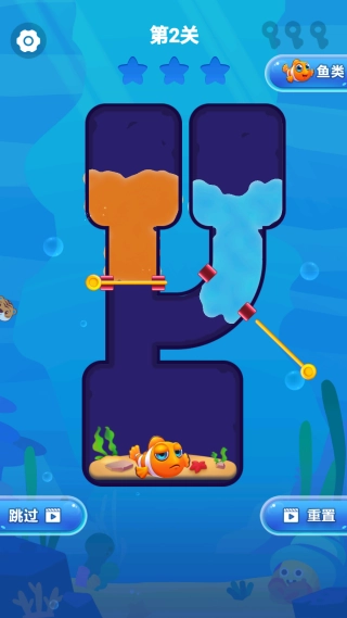救救那条鱼最新版是一款通过管理水流来帮助小鱼的益智游戏,玩家将扮演环境守护者,观察生态系统的细微变化。游戏的每个关卡都设有独特的活塞装置网络,你需要按正确顺序操作这些装置,动态调整水流路线,确保所有缺水的鱼儿都能获得充足的水资源。