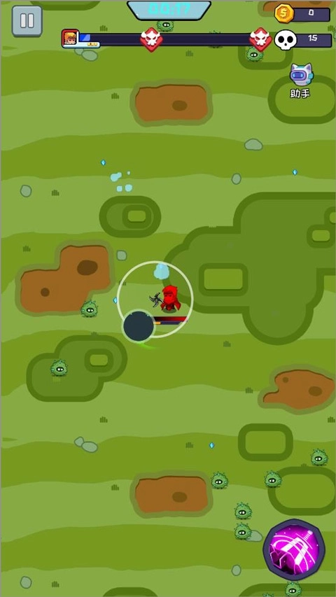 6、玩家通过拖动游戏内的按钮,操控英雄移动以收集地面上由打怪掉落的钻石;