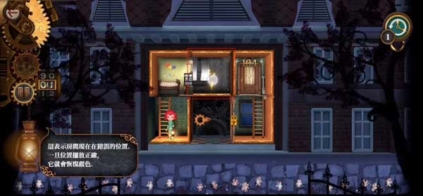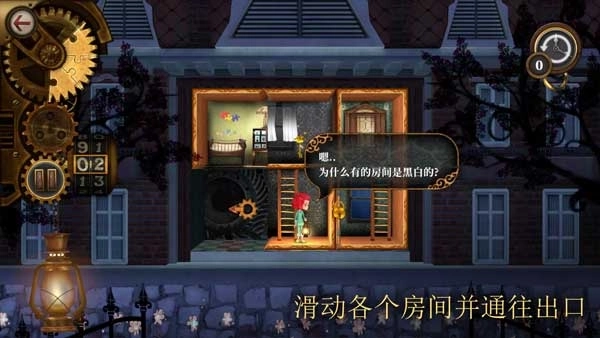 7、第四关里有一间黑白配色的房间,这意味着该房间目前处于错误位置,只要将其移到正确位置,它就会恢复原本的色彩。