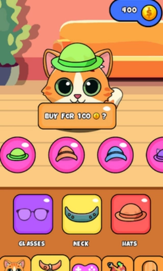 进入游戏后,我们可以先为你的猫咪进行装扮,不妨给它买一顶帽子试试看。