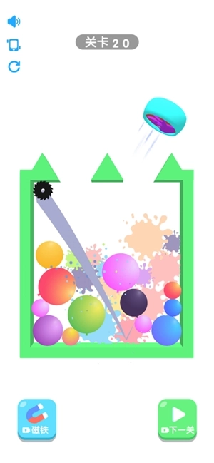1、这是一款解压游戏,玩家需要控制齿轮的发射角度来爆破场景中的所有气球。