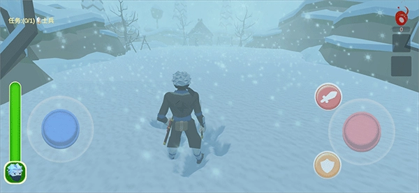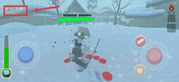 进入游戏后,蓝色轮盘用于操控忍者移动,红色轮盘负责切换视角,红色剑形按钮对应攻击功能,黄色盾牌按钮则是防御功能。