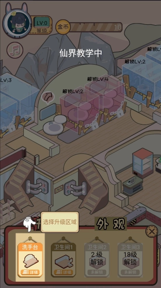 2、按照引导点击建筑,挑选升级区域来完成升级操作,玩家即可解锁相应区域。