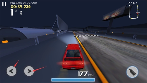 5、进入游戏后,我们需要点击左侧的控制键位来操控汽车的方向。