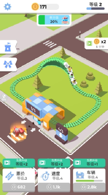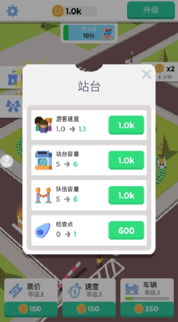 玩家能够借助收益对站台进行升级,以此提升游客移动速度、站台容纳量等各项属性。