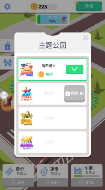 持续升级你的公园,就能解锁更多主题场景,进而挑战运营。