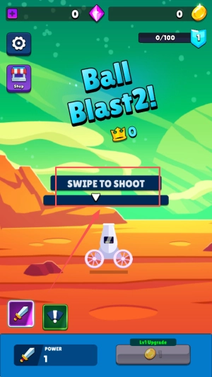 发射球体:根据“SWIPE TO SHOOT”的提示滑动屏幕,发射弹球来击破目标。