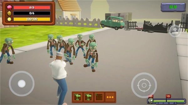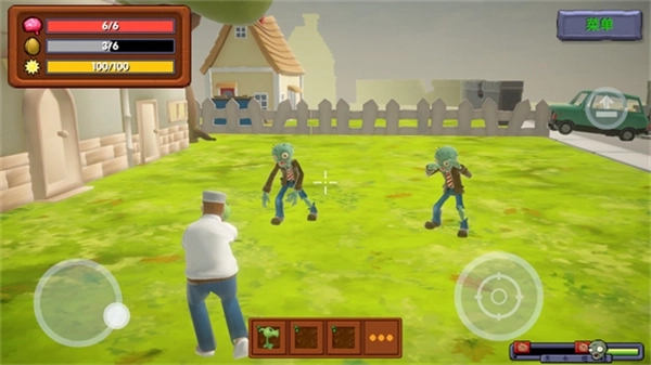 在地图范围内清除所有现身的僵尸,记得避开它们的攻击,守护好戴夫的生命值与护盾值。