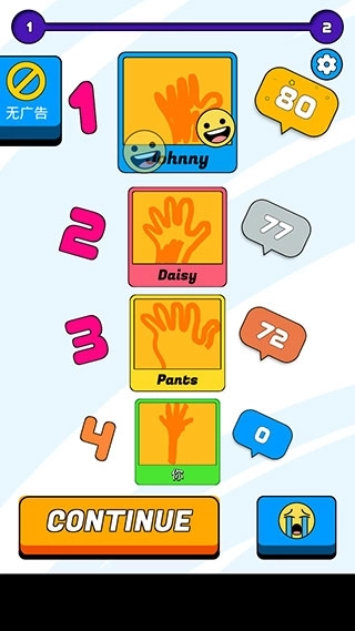 7、系统会依据评分进行排名,点击CONTINUE即可继续挑战。