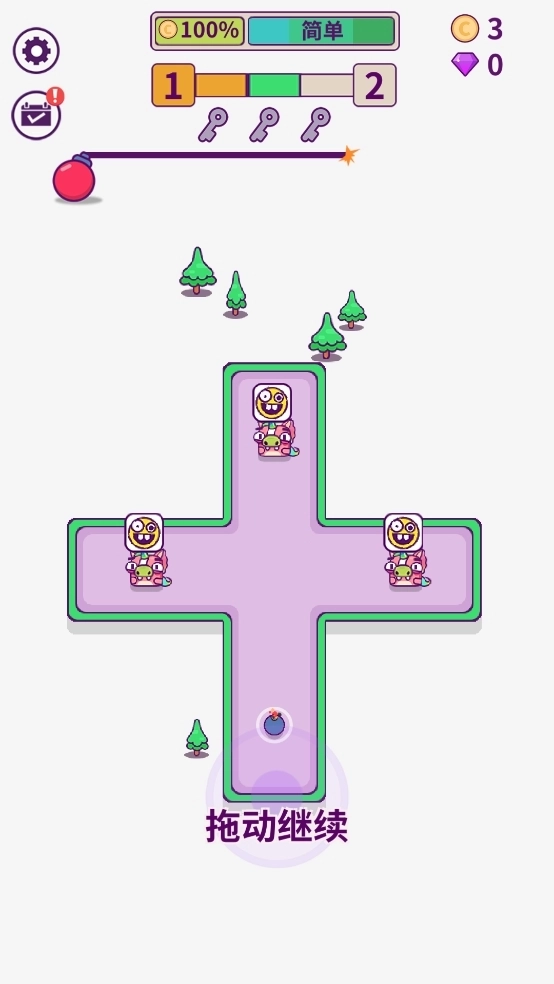 3、按住屏幕还能让时间变慢,你可以在子弹时间里观察战局,进而选择调整炸弹的前进路线。