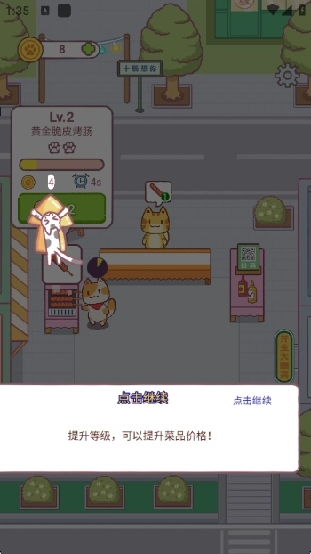 3、放置经营玩法中,玩家搭建好生产设施后,猫咪员工们会主动招呼客人、取送美食,实现全程自动化生产。