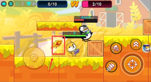采用夸张的卡通美术风格,角色的动作设计得流畅又充满滑稽感,武器释放的特效更是绚烂耀眼。当攻击命中目标时,反馈效果十分清晰,再搭配上诙谐有趣的音效,共同打造出轻松欢快的对战氛围。