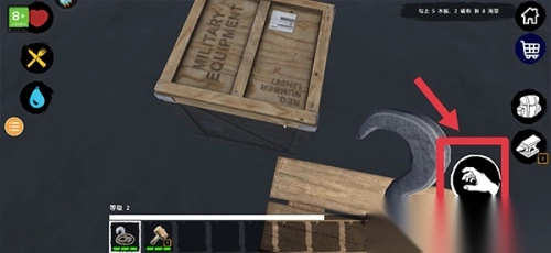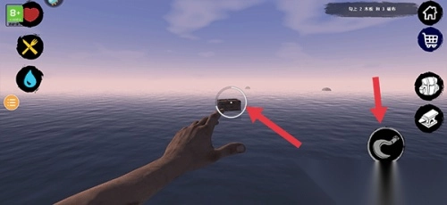 5)勾住后再次点击钩子按键,将勾住的物品拉回至木筏旁