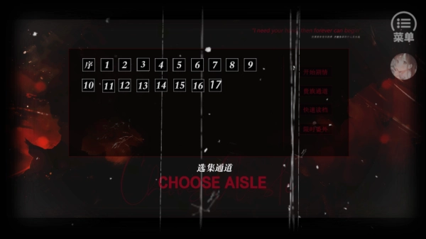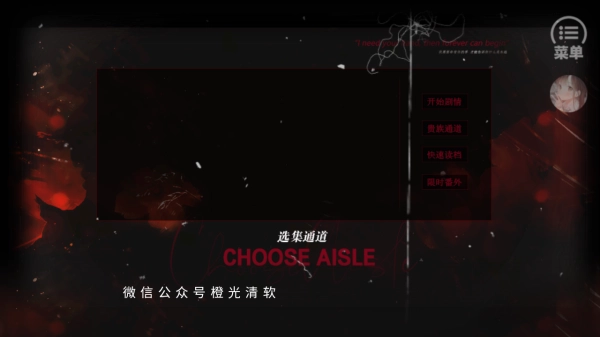 新剧情点【开始剧情】,有进度点【重载通道】可续玩,走特定情节用【快速转场】,看额外内容点【限时番外】,可按需开启故事。