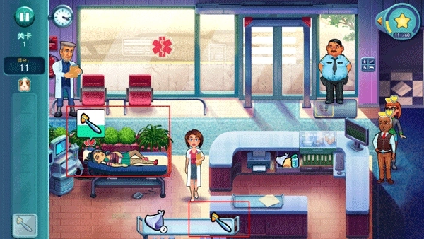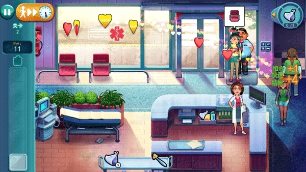 快速分配患者能让您的分数获得一份额外奖励。快速治疗患者可以为您的患者增添额外的心。您可以通过快速完成一个动作来赢取更多奖励!