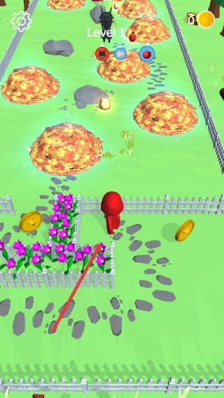 在主界面点击“Tap to play”,即可进入Level1场景(农场地图),并操控红色角色参与比赛。