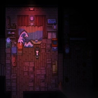 1)游戏画面采用像素风格,昏暗的灯光搭配上诡异的元素,能为你营造出凉飕飕的游戏氛围感。