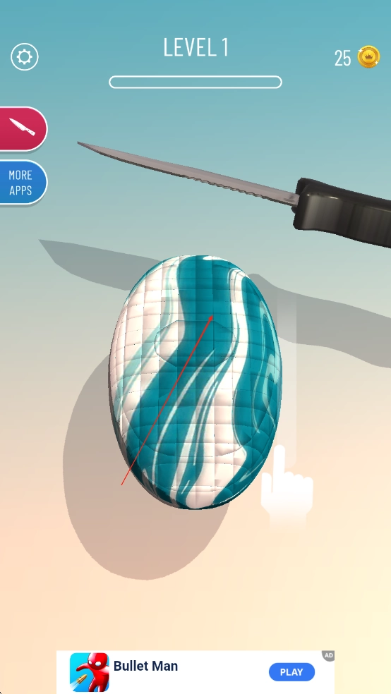 进入游戏后挑选自己喜欢的肥皂样式和刀具,通过滑动屏幕来调整刀刃的角度,稳稳地切割肥皂块。