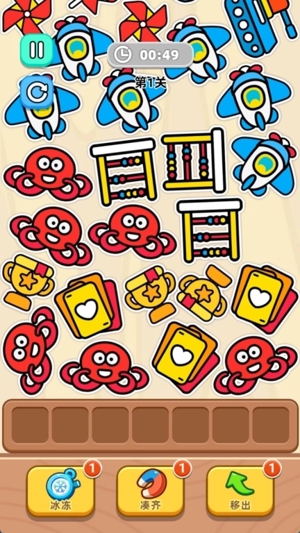 核心规则:要在倒计时结束前把所有目标物品都消除掉,每次点击的时候必须精准地选中三个一模一样的元素才行。