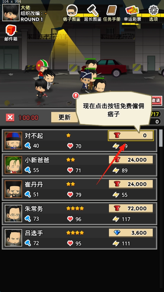 点击按钮,招募痞子,搭配阵容,参与战斗,推进组织改编进程。