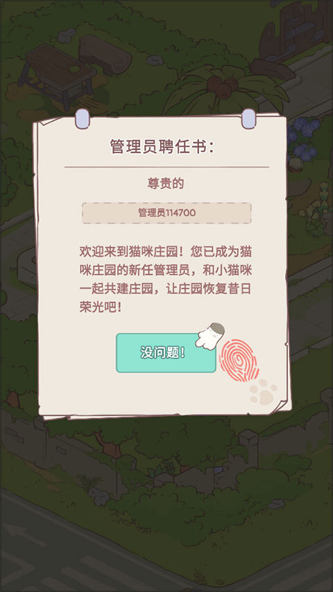 1、把猫咪豪宅安装妥当后进入游戏,你就会成为猫咪庄园的新任管理员啦。