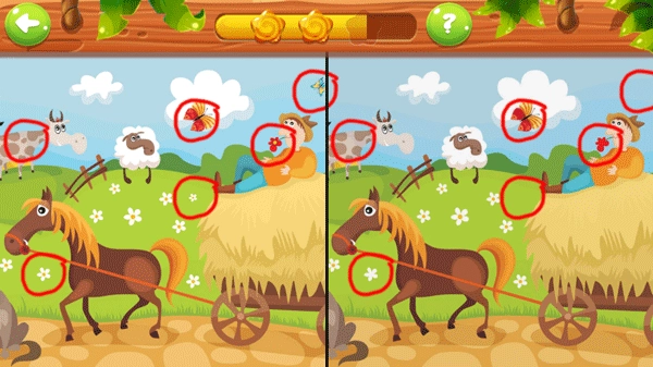 玩家需要在两张极为相似的图片里找出不同之处,这款游戏十分考验玩家的观察力与判断力,同时也考验玩家对色彩的辨别能力。