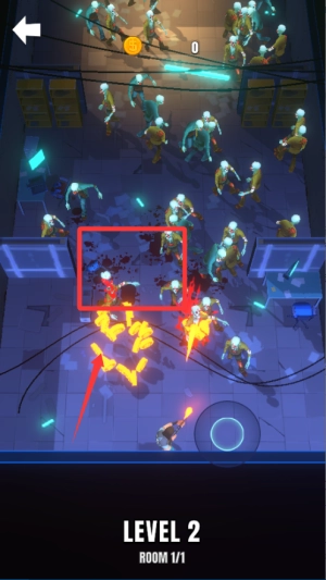 核心玩法以走位射击为核心,持续移动至关重要。陷入尸群包围时,需迅速切换突围武器,或借助场景道具摆脱困境。