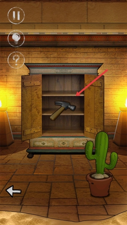 2、切换区域后,打开所在区域的橱柜,会发现锤子道具,点击进行收集,将此工具放入背包,为后续机关做好准备。