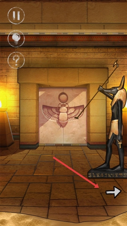 1. 仔细观察右侧的神像以及前方的石门,通过点击地面上的箭头来切换不同区域。在场景中积极探寻能够与之互动的物件,同时要格外留意环境里所隐藏的细节线索。