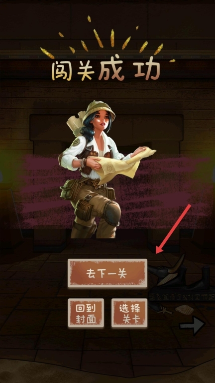 4、当机关成功解锁,石门随之开启,本关挑战宣告完成。此时,界面上会弹出结算提示。玩家只需点击“去下一关”按钮,即可开启全新的冒险关卡。