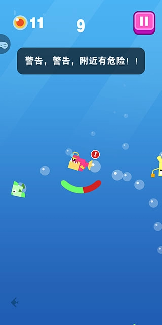 如果附近将有大鱼出现,会弹出危险的警告信息。